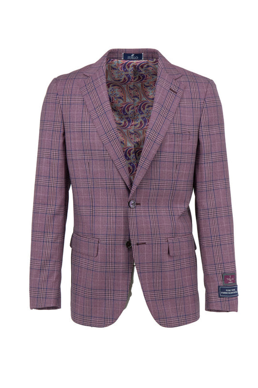 Tiglio Luxe Mauve with Windowpane Porto Slim Fit Pure Wool Blazer TL8320