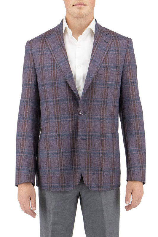 Tiglio Luxe Eggplant with Navy and Red Windowpane Dolcetto/THP Modern Fit Half Lined, Pure Wool Jacket TL3325