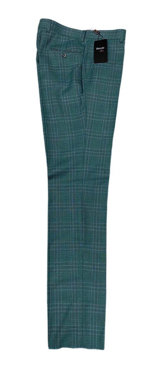 Tiglio Luxe 2560 Gren/Lilac Plaid Flat Front Pure Wool Modern Fit TL2656
