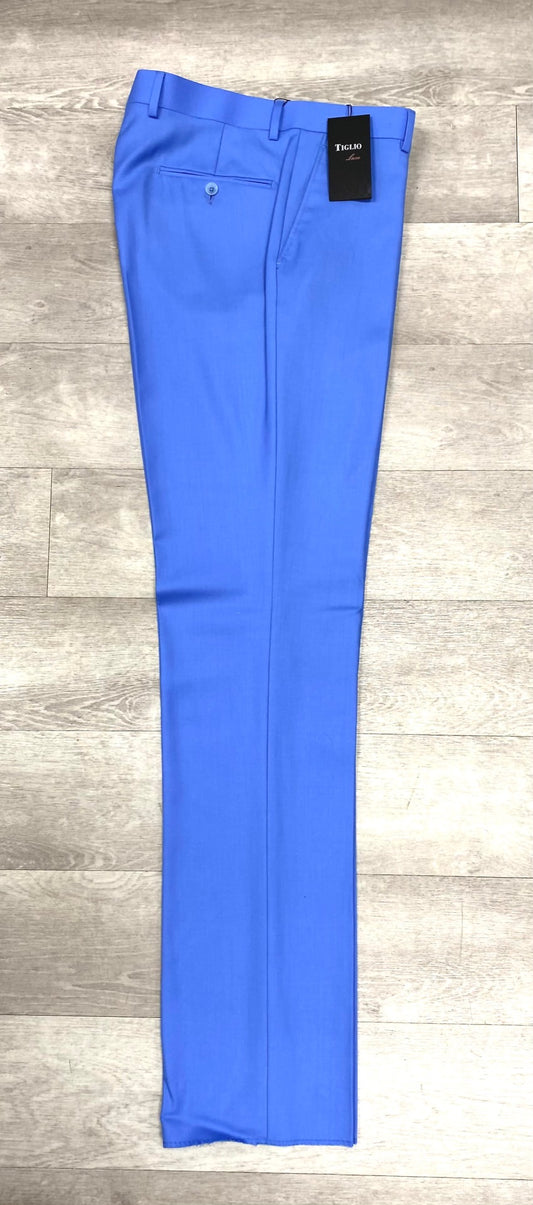 Tiglio Luxe 2560 Solid Blue Flat Front Pure Wool Modern Fit TL2657
