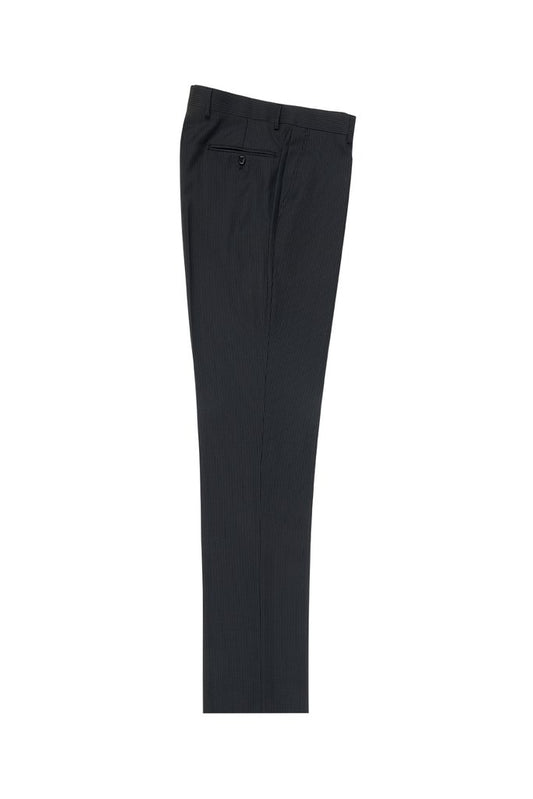 Tiglio Luxe Black Mini Pin-Stripe Flat Front, Pure Wool Modern Fit Dress Pants 2560 TIG1046