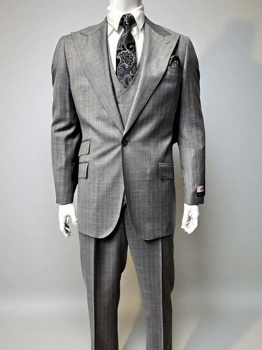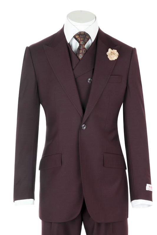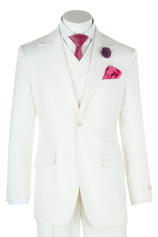 Tiglio Rosso "New Rosso" Off White Wide Leg Pure Wool Suit & Vest TL2622 (IN STORE)