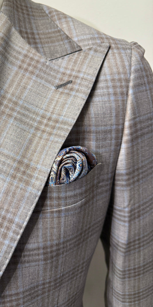 Tiglio Luxe Prosecco Grey Plaid Blue Windowpane Modern Fit TL6373 (IN STORE)