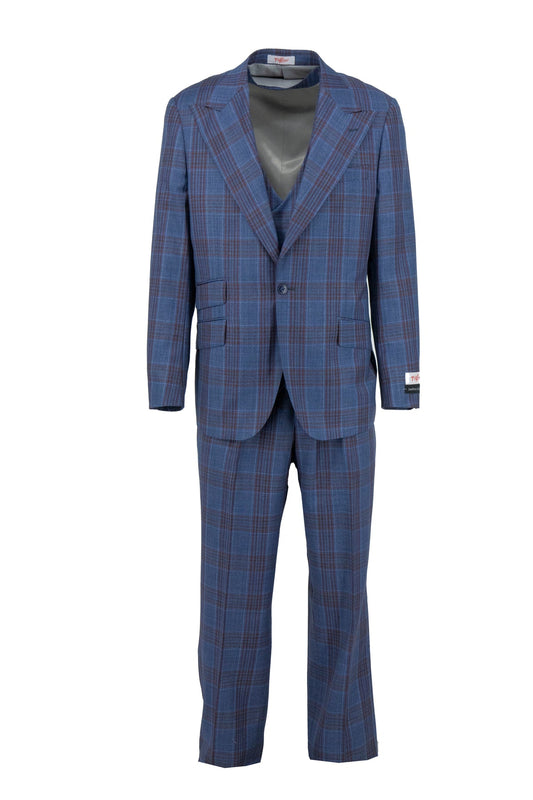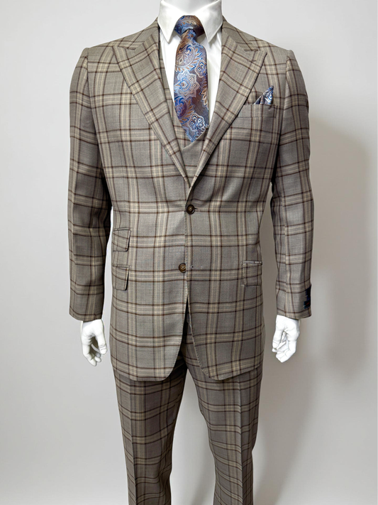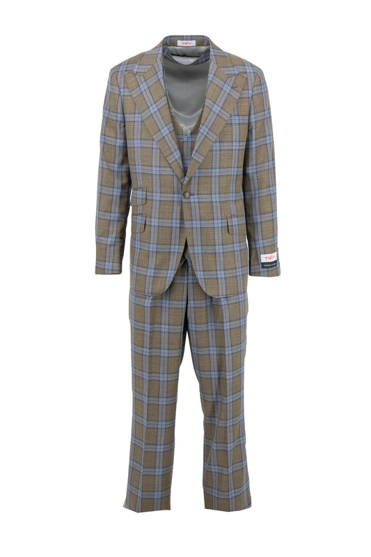 Tiglio Luxe Prosecco, Modern Fit Brown Plaid Suit & Vest TL4242 (IN STORE)