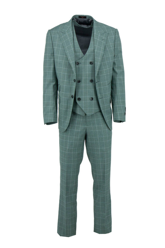 Tiglio Luxe Sage Green with Windowpane Prosecco, Modern Fit Pure Wool Suit & Vest TL5588 (IN STORE)