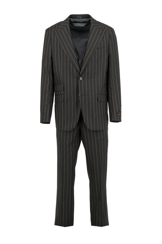 Tiglio Luxe Brown with Light Brown Pinstripes Prosecco, Modern Fit Pure Wool Suit & Vest TL3170
