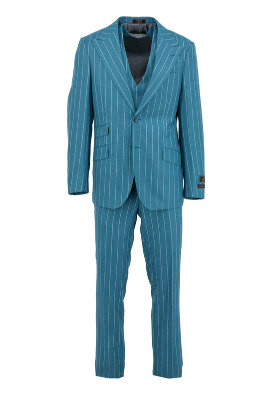 Tiglio Luxe Crystal Teal with Pinstripes Prosecco, Modern Fit Pure Wool Suit & Vest TL6019
