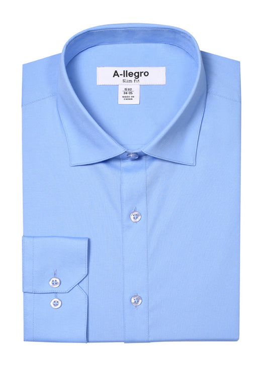 Slim Fit Cotton Convertible Cuff Dress Shirt Blue S-S100