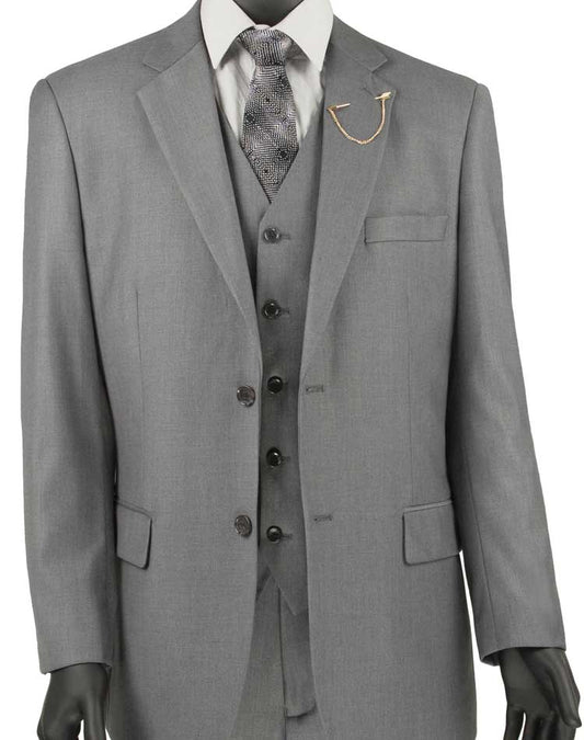 Regular Fit 3 Piece Suit 2 Button (Medium Gray) V2TR