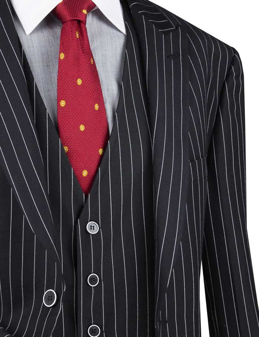 Regular Fit 3 Piece Suit 2 Button Gangster Stripe (Black) V2RS-9