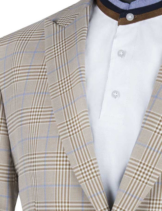Slim Fit 2 Piece Double Breasted Windowpane Suit Tan SDW-2