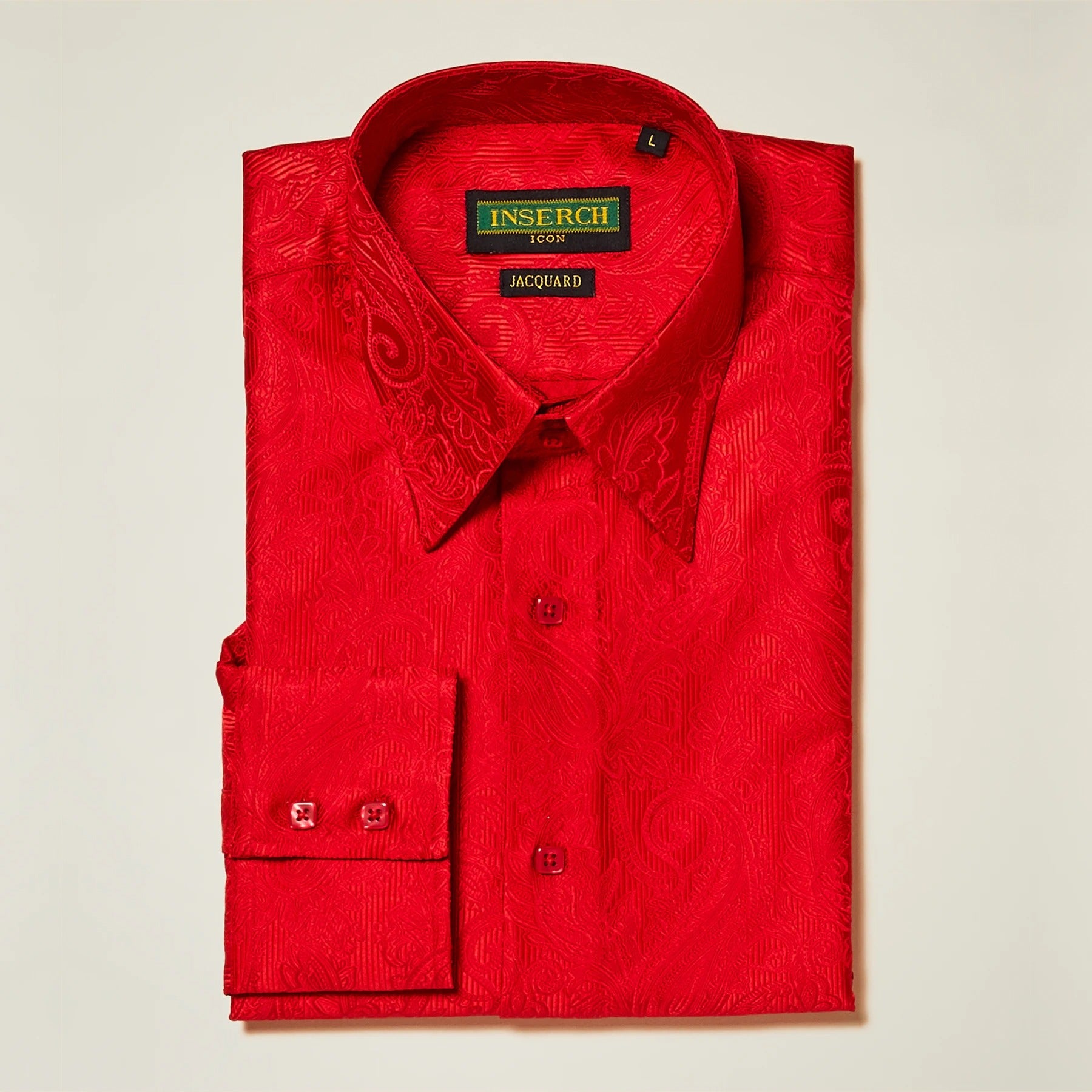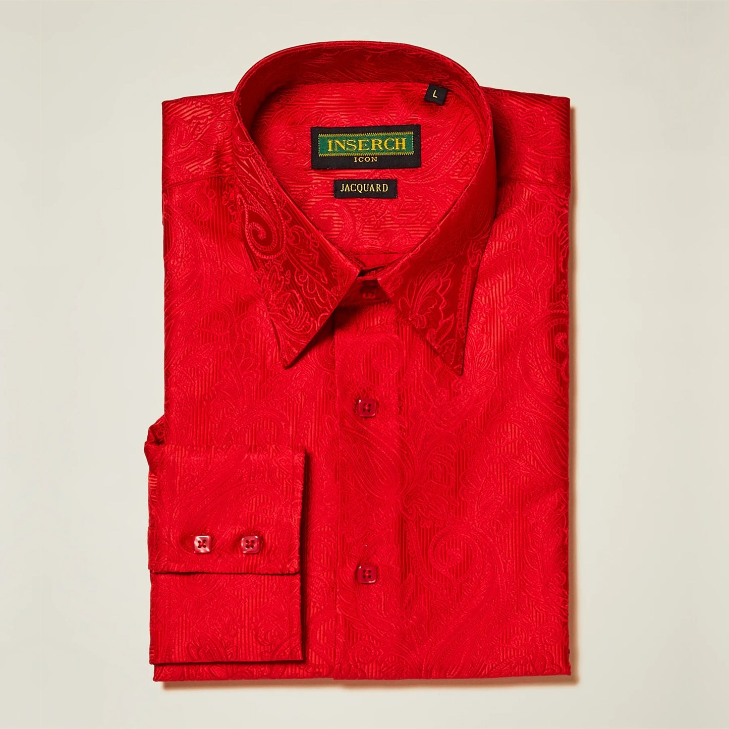Inserch Long Sleeve Paisley Jacquard Shirt LS005-30 Red