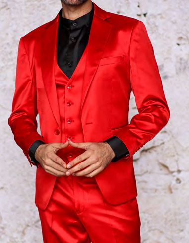 INSOMNIA CLASSICO 3PC Tailored Fit Satin Spandex Red Suit