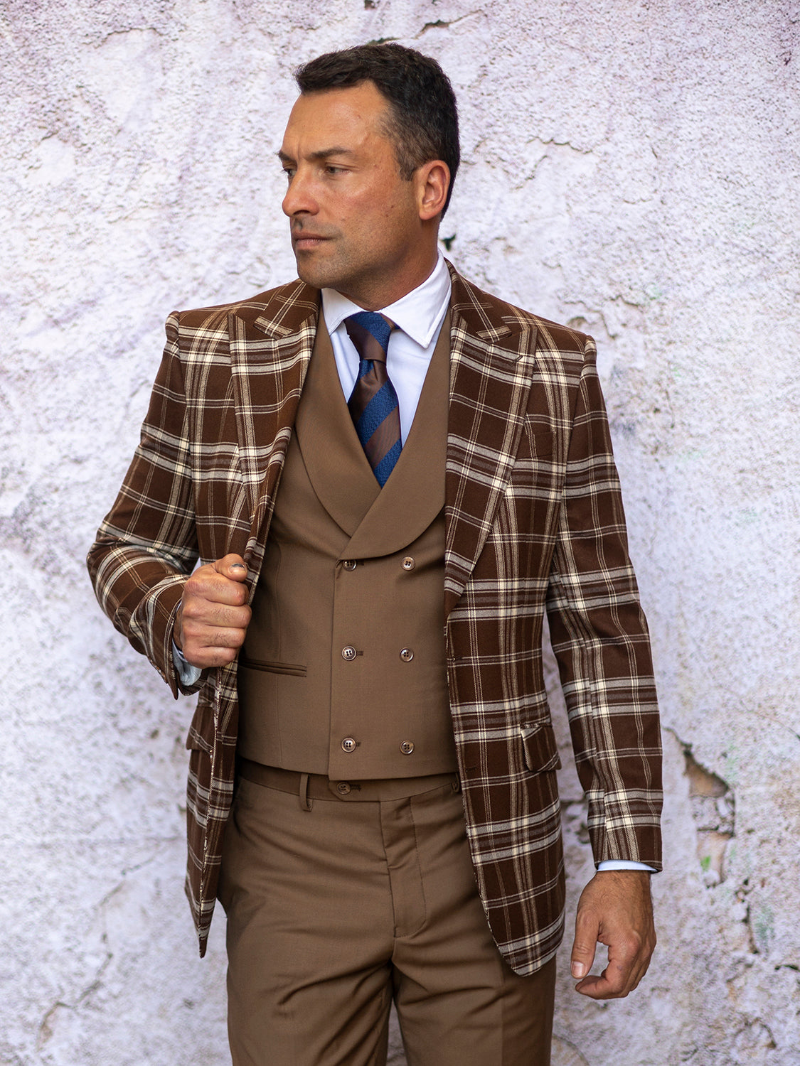 INSOMNIA PARIS-1 3PC Compose Tailored Fit Brown Suit