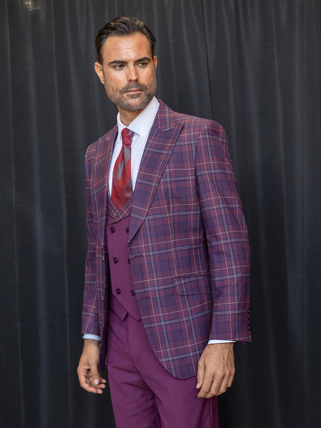 INSOMNIA PARIS-3 3PC Compose Tailored Fit Burgundy Suit
