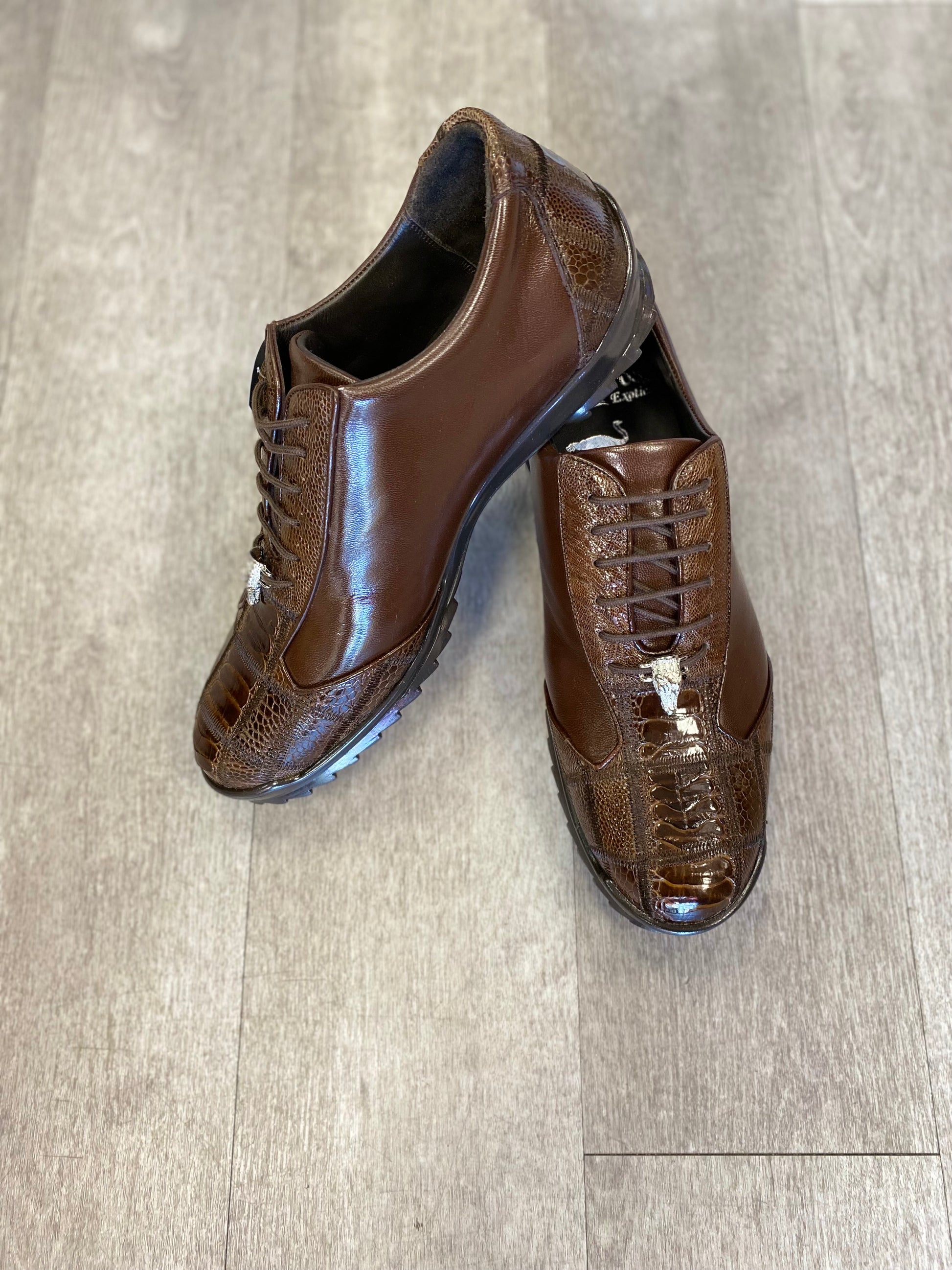 This exceptional quality combination of Ostrich Leg and leather footwear model is handmade by one of the finest manufacturers of exotic skins, Los Altos. The stylish lace-up is handmade from a combination of Ostrich Leg skin and leather. It is fully leather lined, with a rubber sole.