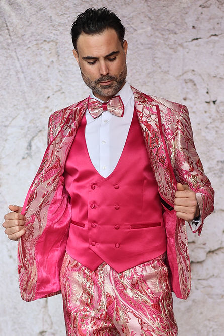 MANZINI SANTO 3-Piece Slim Fit Fancy Metallic Pattern Fuchsia Tuxedo Suit