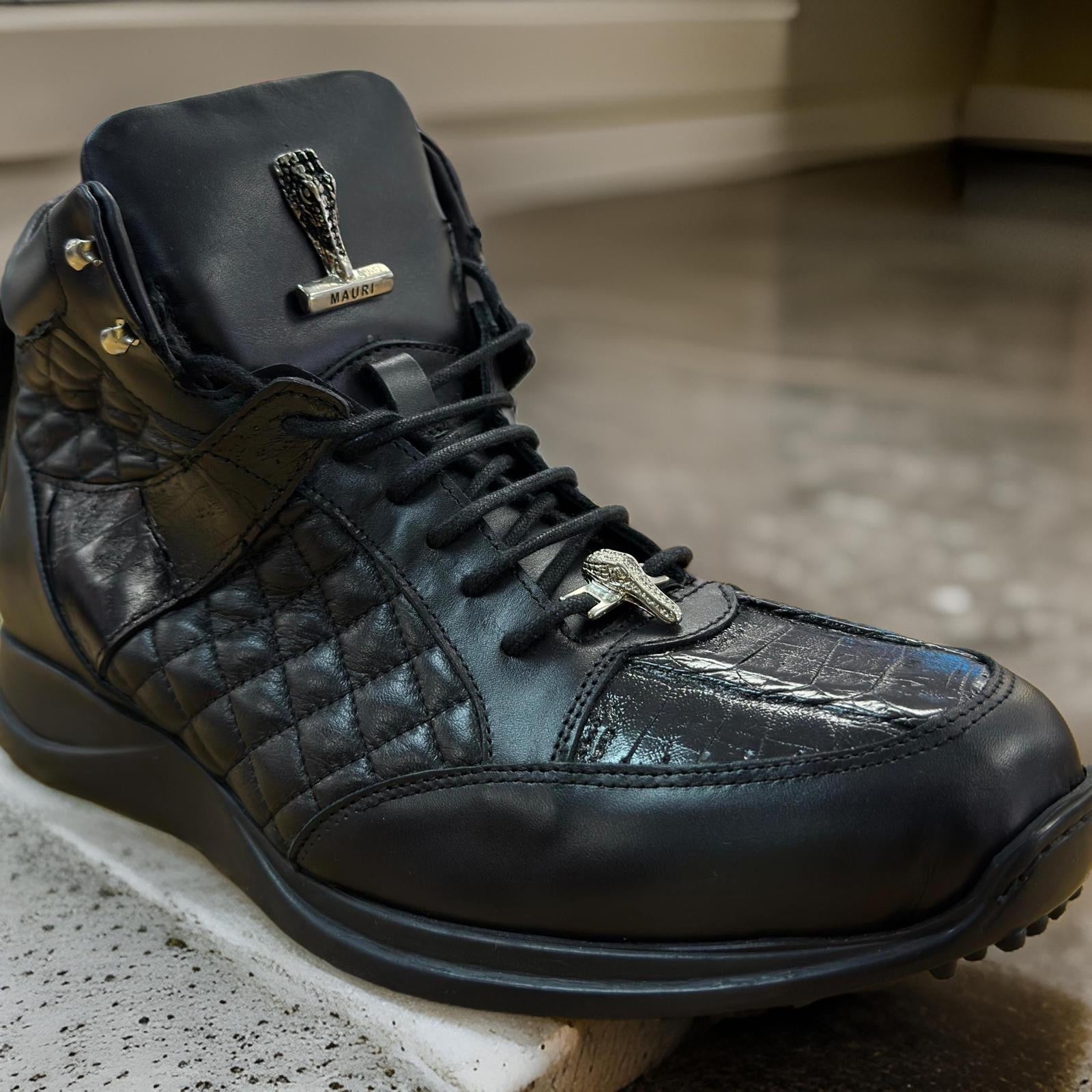 Mauri 8900/2 Custom Made in Italy. Casual sneaker made from fashionable baby crocodile with comfortable look and feel. Toe is full crocodile and the side is all patent leather.