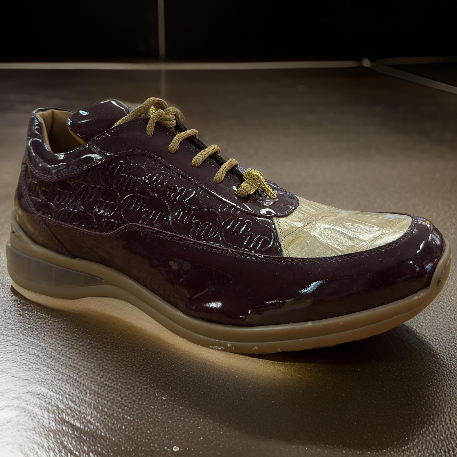 Mauri 8900/2 Custom Made in Italy. Casual sneaker made from fashionable baby crocodile with comfortable look and feel. Toe is full crocodile and the side is all patent leather.