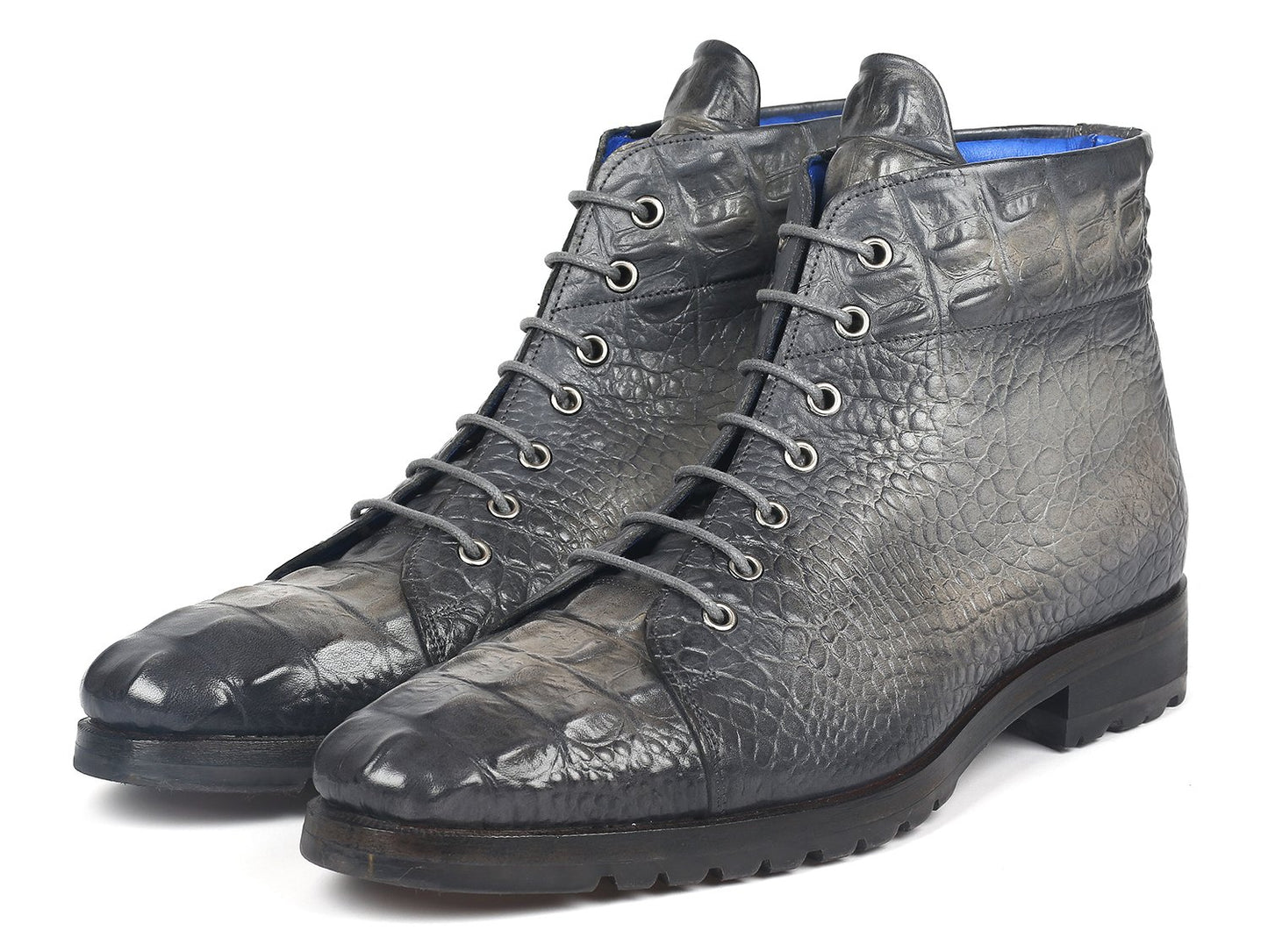 Paul Parkman Gray Croco Embossed Leather Boots - 12811-GRY