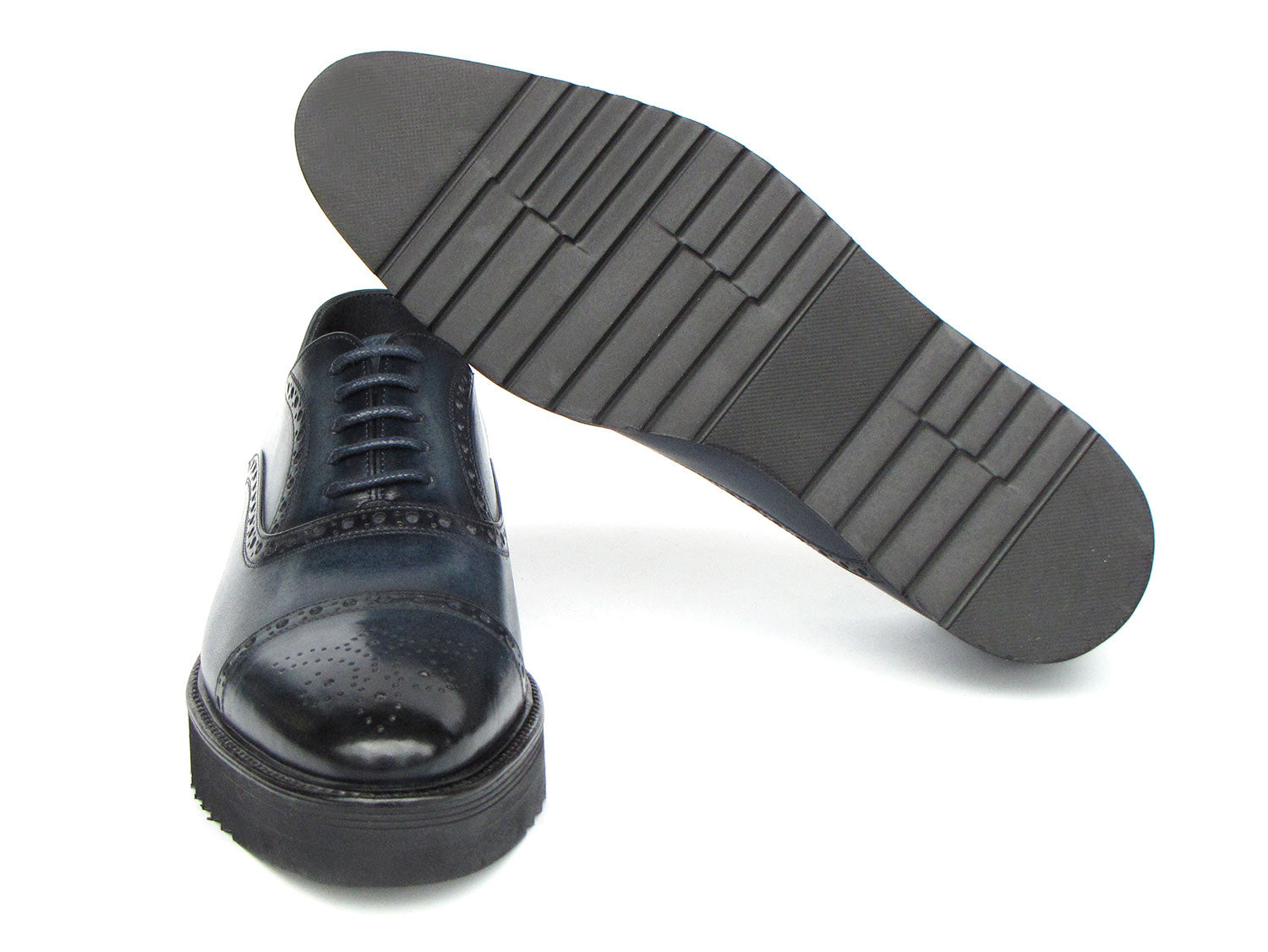 Paul Parkman Men's Smart Casual Cap Toe Oxford Shoes Navy Leather - 285-NVY-LTH
