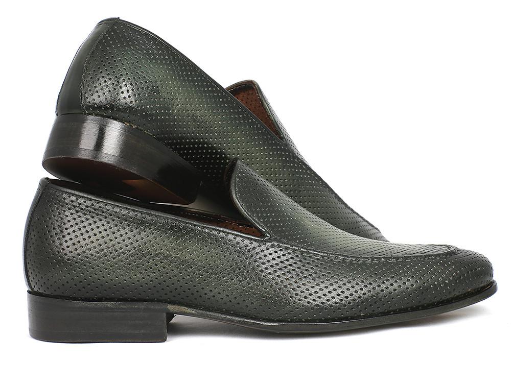 Paul Parkman Perforated Leather Loafers Green - 874-GRN