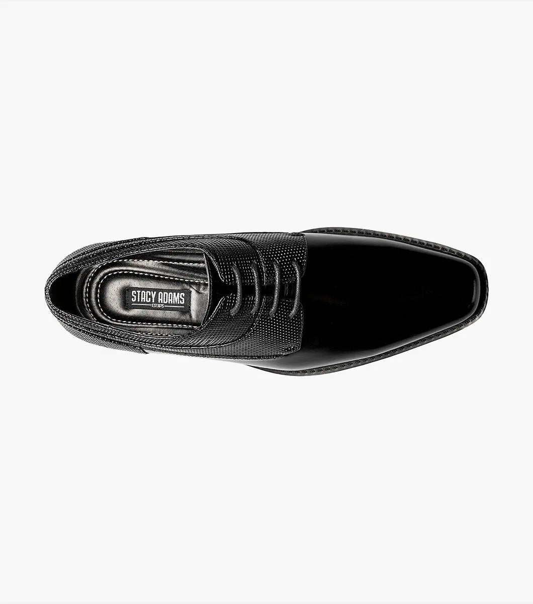 The Stacy Adams Kirkley Plain Toe Oxford has a clean, elegant design that is complimented by eye-catching textured leather along the collar and a modern silhouette. The simple style gives this shoe a unique versatility so that it can be worn to the office and after hours.