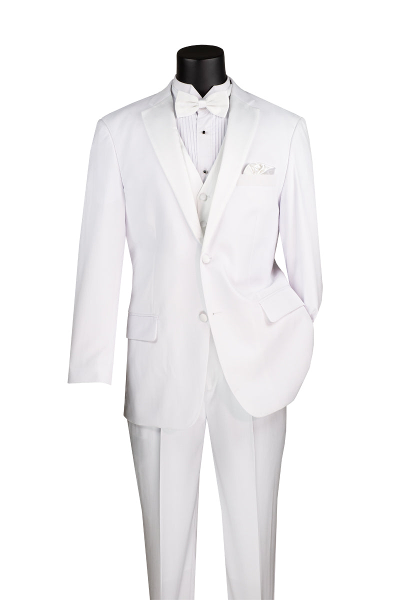 Regular Fit 4 Piece Tuxedo with Vest Bow Tie (White) 4TV-1