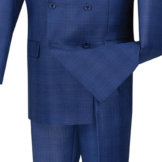 Regular Fit Double Breasted Glen Plaid 2 Piece Suit (Blue) DRW-1