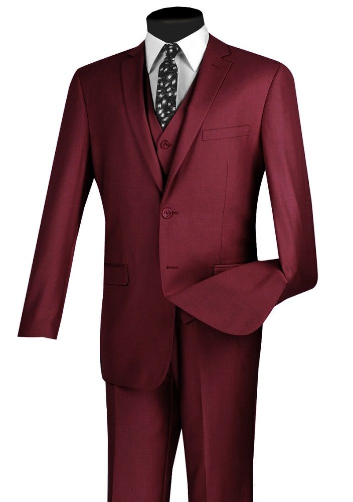 Slim Fit 3 Piece 2 Button Suit (Burgundy) SV2900